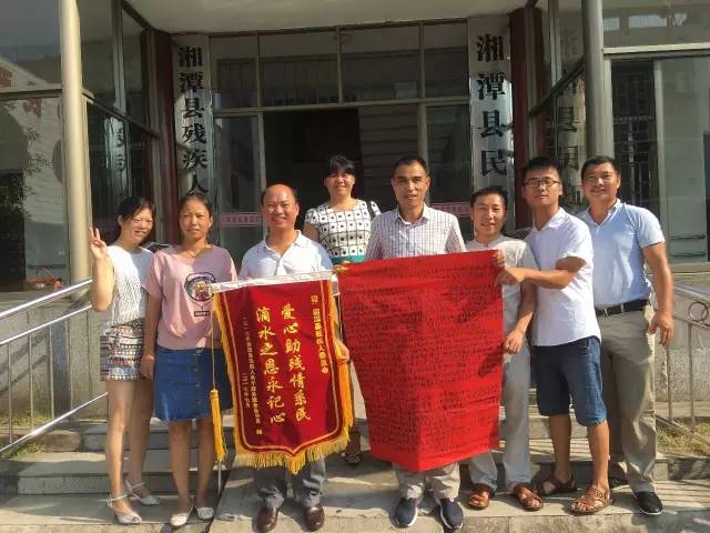 湘潭县第一期残疾人电子商务培训班学员代表向县残联和银海培训学校赠送锦旗