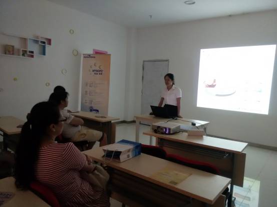 赵曌老师就“如何坐好月子”这个方面,尽心了向体验者们传授了正确的知识,她用心的回答了听众所提出的每一个问题,并劝导大家要对坐月子这个事情重视起来,因为这关乎到女人的终身健康。我们银海也派出了十分专业的刘梦老师教授大家正确的做被动操,这个准爸爸,我们看好你哟! 赵老师为妈妈们讲课现场