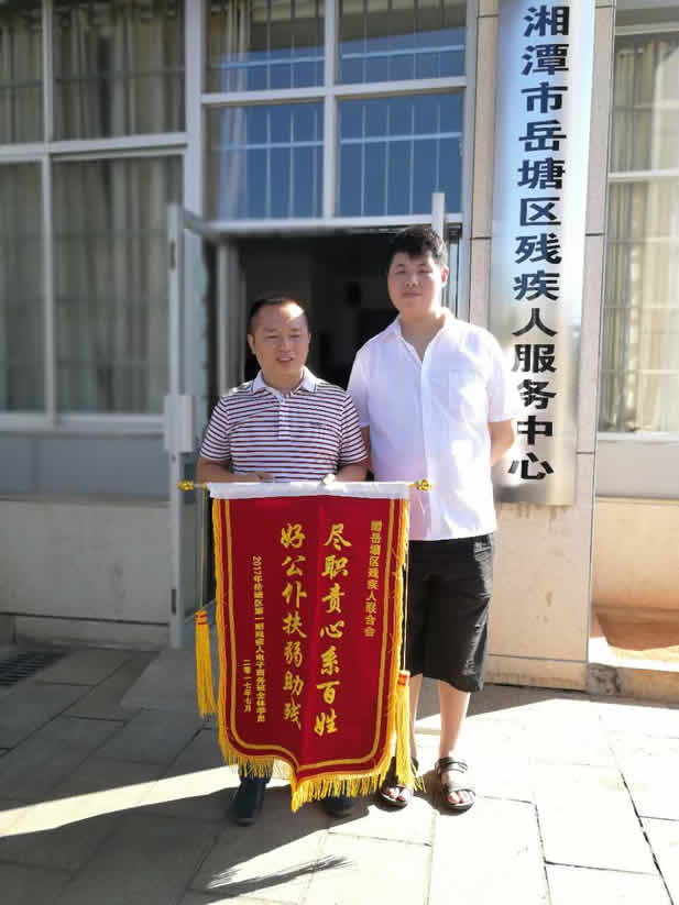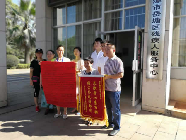 为感谢岳塘区残联对残疾朋友们的帮扶,87上午,岳塘区第一期残疾人电子商务培训班的学员代表携锦旗和感谢信来到区残联,并递献给区残联理事长周卫胜,陪同此行的还有银海家政董事长王朝晖女士、银海培训学校校长陈妙龄女士,以及班主任刘梦老师。